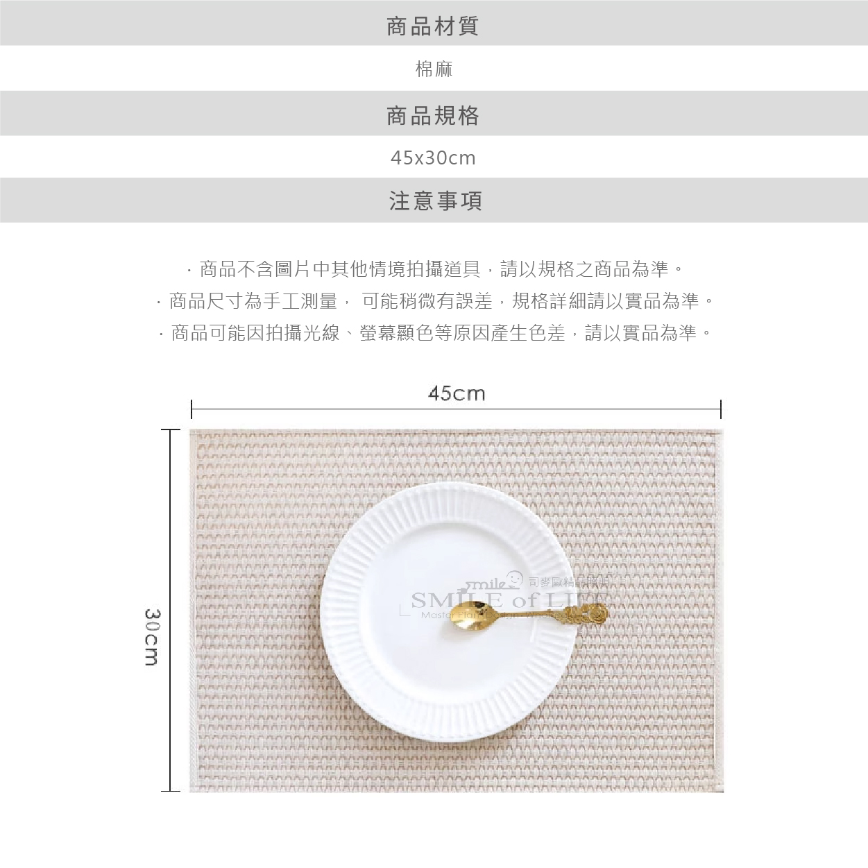棉麻編織餐墊2入組 為您的餐桌增添自然與質樸的氣息, 以天然材質與手工編織工藝, 為您的用餐時光增添一份舒適與溫馨。 - 簡約的設計,既能輕鬆搭配各種風格的餐具 棉麻混紡材質,柔軟且耐用,能有效保護餐桌不受損壞, 同時增添一層自然的美感,顯得更加溫馨與雅致。 (つ´ω`)つ 商品尺寸:寬45cm 高30cm