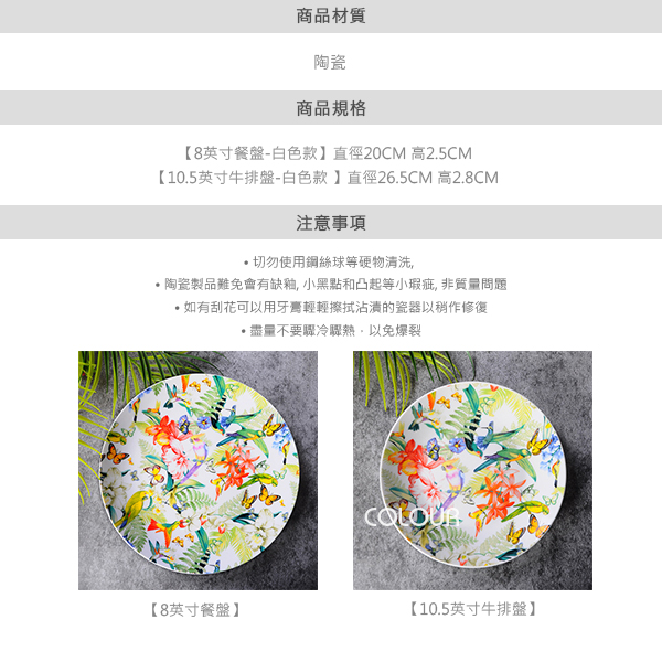 10.5英寸牛排盤(白色款), 8英寸餐盤(白色款)