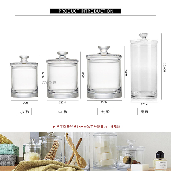 歐式帶蓋加厚玻璃儲物罐【小/中/大/高款】 透明玻璃簡約款式 瓶身通透 耐用且美觀 擺放在婚禮派對/生日派對都合適 清澈乾淨的玻璃儲物罐 營造出生活中的安逸 【商品尺寸】 小-高14cm 寬9cm 中-高18cm 寬12cm 大-高22cm 寬15cm 高款-高30.4cm 寬12cm