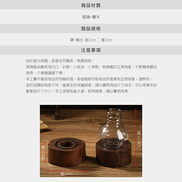 泰式浪漫蠟燭台 泰國匠人手工雕刻 燭芯尺寸大小合適 沒有多餘的加工 自然而質樸 整木雕刻 所以在燭台內不能看出木材特有年輪紋理 此乃實木產品特點 商品尺寸 罩+燭台: 高15cm / 寬10cm