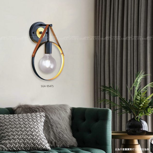 現代幾何圓藝術壁燈SGA-95475 黑色烤漆鐵藝燈體 優雅美觀大氣 無需過多裝飾就顯出優雅感 點亮您家居溫馨之光 產品編號:SGA-95475 尺寸:W210mm H290mm D120mm 光源:E27X1 另計 材質:鐵材烤黑漆/金漆、皮革、鐵圈 ※安裝過後恕不退換/偏遠地區郵資另計※