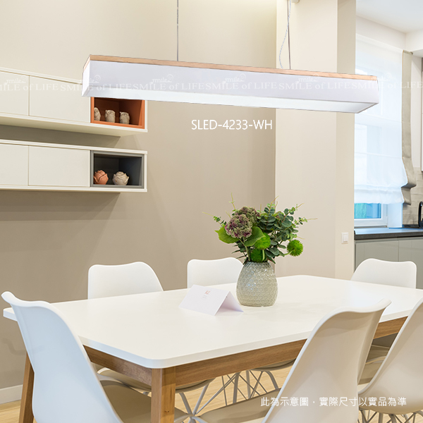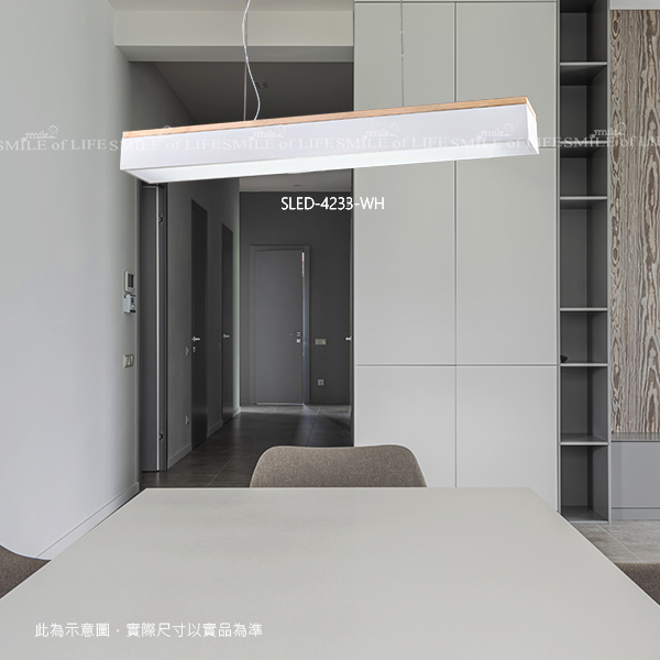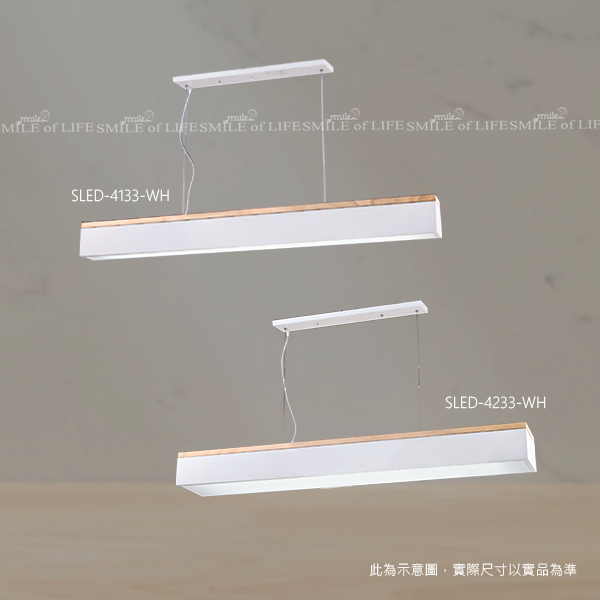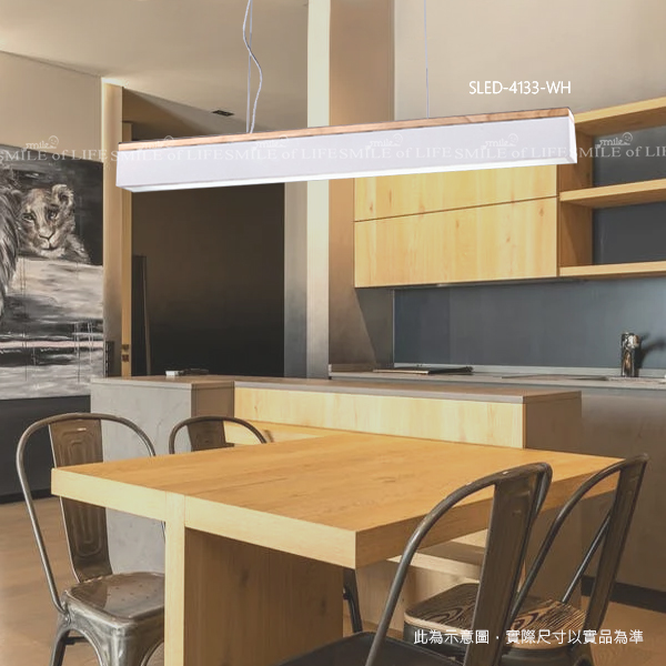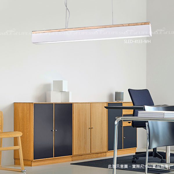 現代極簡長條吊燈【黑/白】 # 兼具現代性與極簡風格的長條吊燈, 搭配溫和不疲勞不刺眼的色溫, 在辦公與開會空間更展專業知性。 商品規格: SLED-4233-BK 尺寸 : L1260mm W200mm H120mm 線長 : 1000mm 光源 : 附T8 LED 4尺X2 材質 : 鐵材烤黑漆、橡木、壓克力底罩 SLED-4133-BK 尺寸 : L1260mm W100mm H120mm 線長 : 1000mm 光源 : 附T8 LED 4尺X1 材質 : 鐵材烤黑漆、橡木、壓克力底罩 SLED-4233-WH 尺寸 : L1260mm W200mm H120mm 線長 : 1000mm 光源 : 附T8 LED 4尺X2 材質 : 鐵材烤白漆、橡木、壓克力底罩 SLED-4133-WH 尺寸 : L1260mm W100mm H120mm 線長 : 1000mm 光源 : 附T8 LED 4尺X1 材質 : 鐵材烤白漆、橡木、壓克力底罩