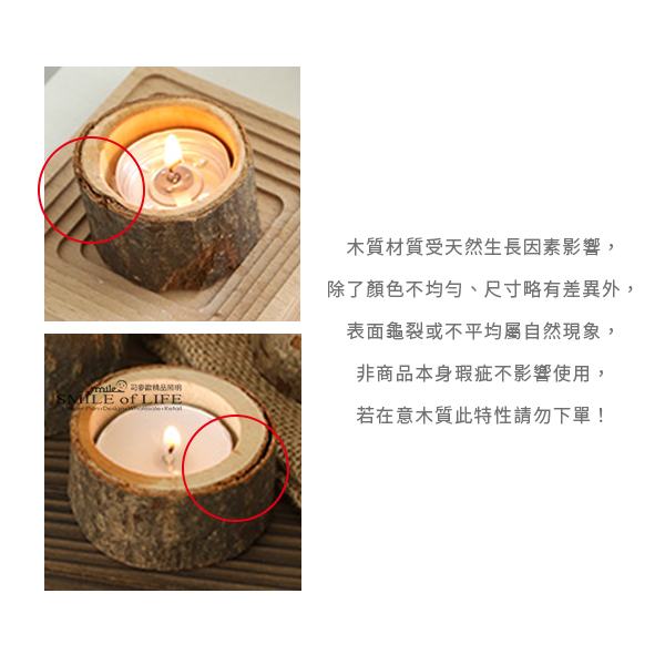 田園風小木樁燭台【三款】 百搭又清新的一款燭台, 實木質感非常清新自然, 小巧又精緻,點燃後氛圍感十足, 可當桌面、櫃台裝飾, 多個搭配錯落感更質感~ 木質材質受天然生長因素影響, 除了顏色不均勻、尺寸略有差異外, 表面龜裂或不平均屬自然現象, 非商品本身瑕疵不影響使用, 若在意此特性請勿下單唷! 商品規格: 矮款:高2.5cm直徑6cm 可放3.5cm內蠟燭 中款:高4.2cm直徑6cm 可放3.5cm內蠟燭 高款:高7cm直徑6cm 可放3.5cm內蠟燭