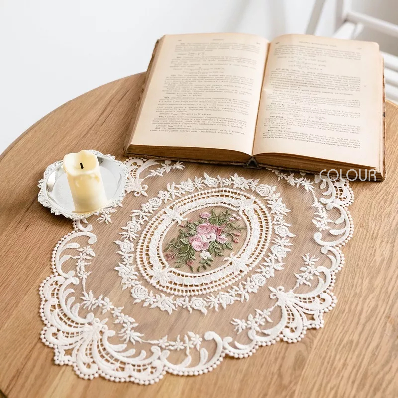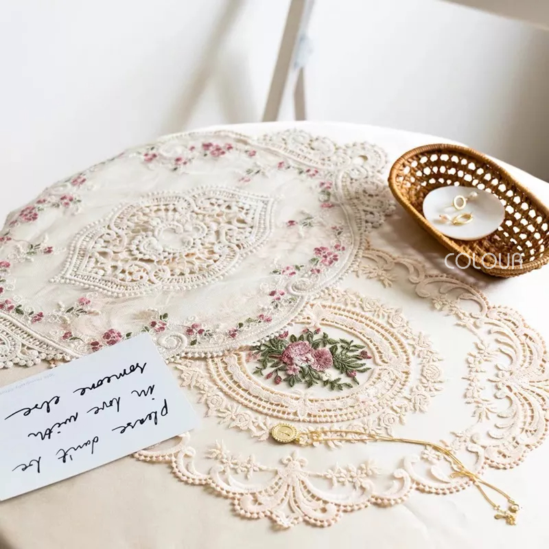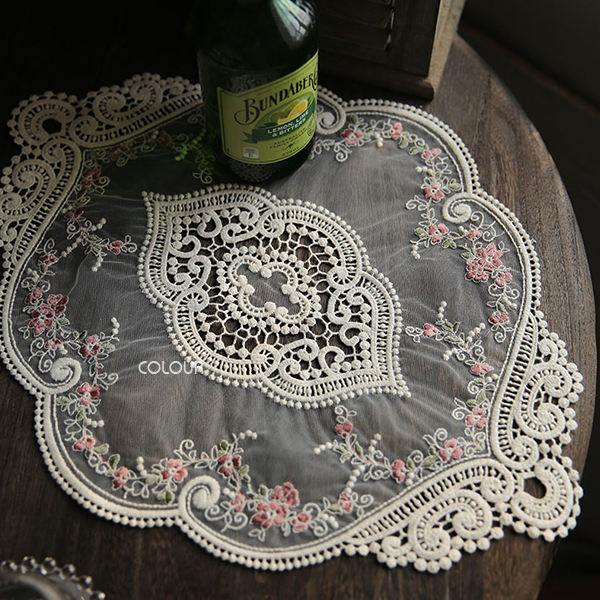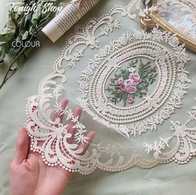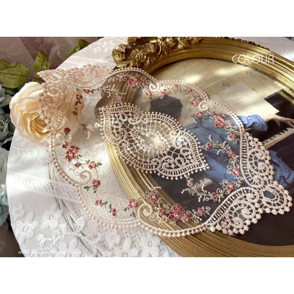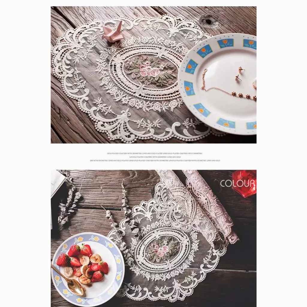 精緻刺繡花朵 經典鉤花紋理 非常復古路線的法式布蕾絲桌布 實品漂亮有質感,蕾絲墊用途很廣 佈置餐桌或當擺拍道具都很美♡♡♡