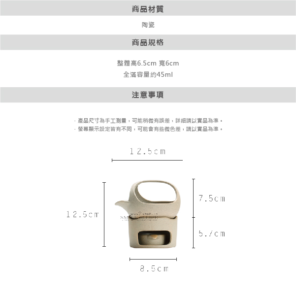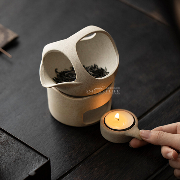 粗陶烤茶器【一組】 使用耐火白泥高溫燒製, 素坯不施釉,簡約復古, 炒茶、醒茶、提香一爐多用, 無煙焙茶烘烤蘊蓄茶香, 蠟燭托勺溫烤茶香馥郁, 歡聚煮茶待客不勝歡喜。 商品規格: 烤茶器:寬12.5cm 高7.5cm 烤茶爐:寬8.5cm 高5.7cm