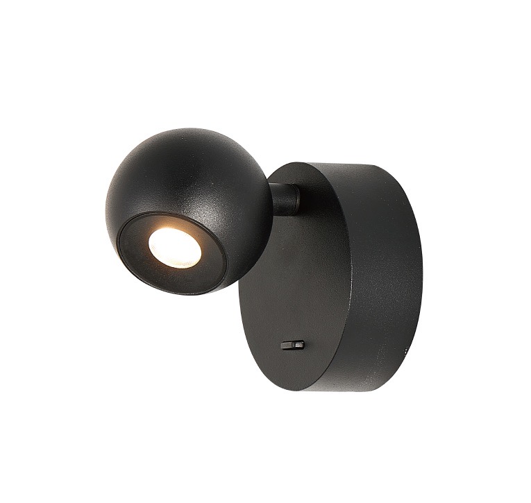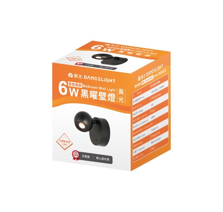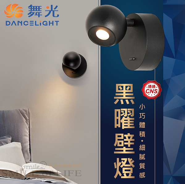 舞光LED 6W黑曜壁燈 黑曜壁燈採用實心鋁材質 呈現出細膩的高質感 小巧的燈頭可自由轉向 安靜陪伴你的床頭閱讀時光 ✦ 330°可調式燈頭 ✦ 燈體附切換開關 ✦ 限裝裝潢板 商品尺寸: 電壓:100-240V 驅動器:內含 消耗電力:6W 色溫:3000K 光通量:490lm 演色性:80RA 平均壽命:15000小時 燈體材質:黑色鋁合金烤漆 尺寸:直徑90*深110.5mm