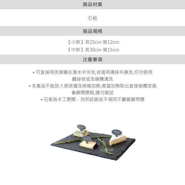 芝士板岩餐盤 來自於大自然的藝術,渲染出純真純淨的美。 在酒店,西餐廳,酒吧餐桌上, 茶几上放一款歐式田園風石板餐盤, 給您生活添上一筆濃厚的藝術色彩。 商品尺寸: 【小款】長25cm 寬12cm 【中款】長30cm 寬15cm