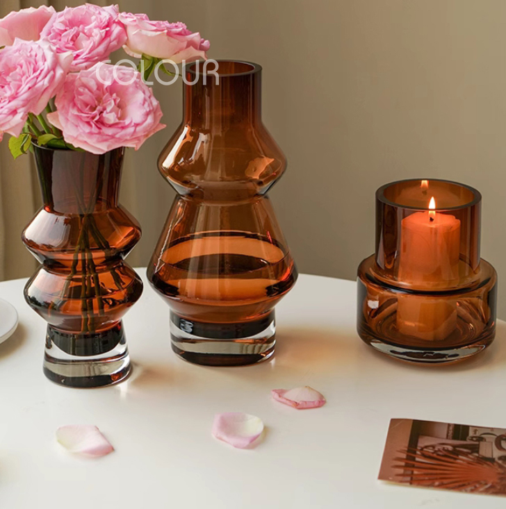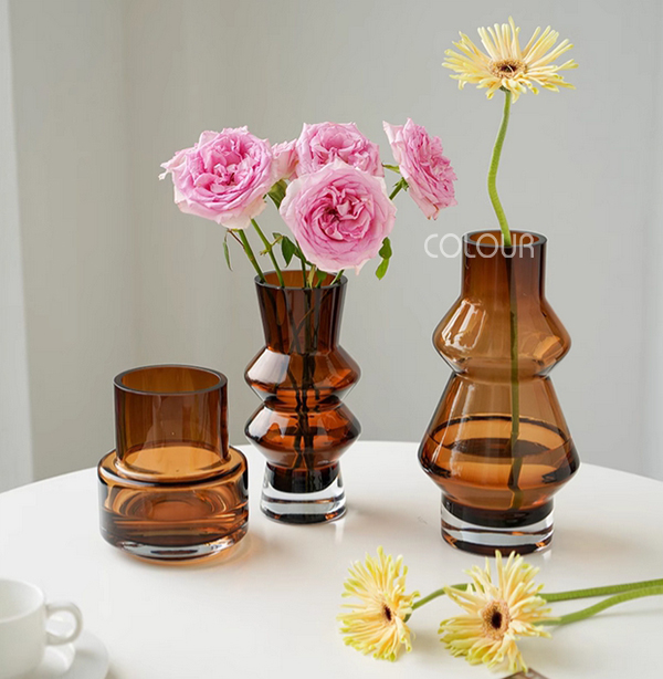 若隱若現的琥珀色透明玻璃 插上你最喜歡的花 隨意搭配就能營造出高級感