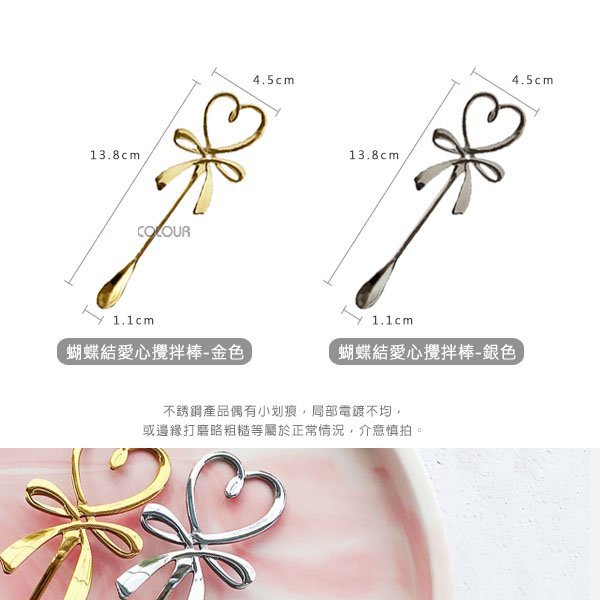 輕奢蝴蝶結攪拌勺 獨特造型夢幻又可愛 少女心整個大爆發! 蝴蝶結輕巧外觀 精巧設計 拿取更加便利 可當湯勺、咖啡勺、攪拌棒…等等 【商品尺寸】 長度13.8cm,勺頭寬1.1cm,蝴蝶結寬4.5cm