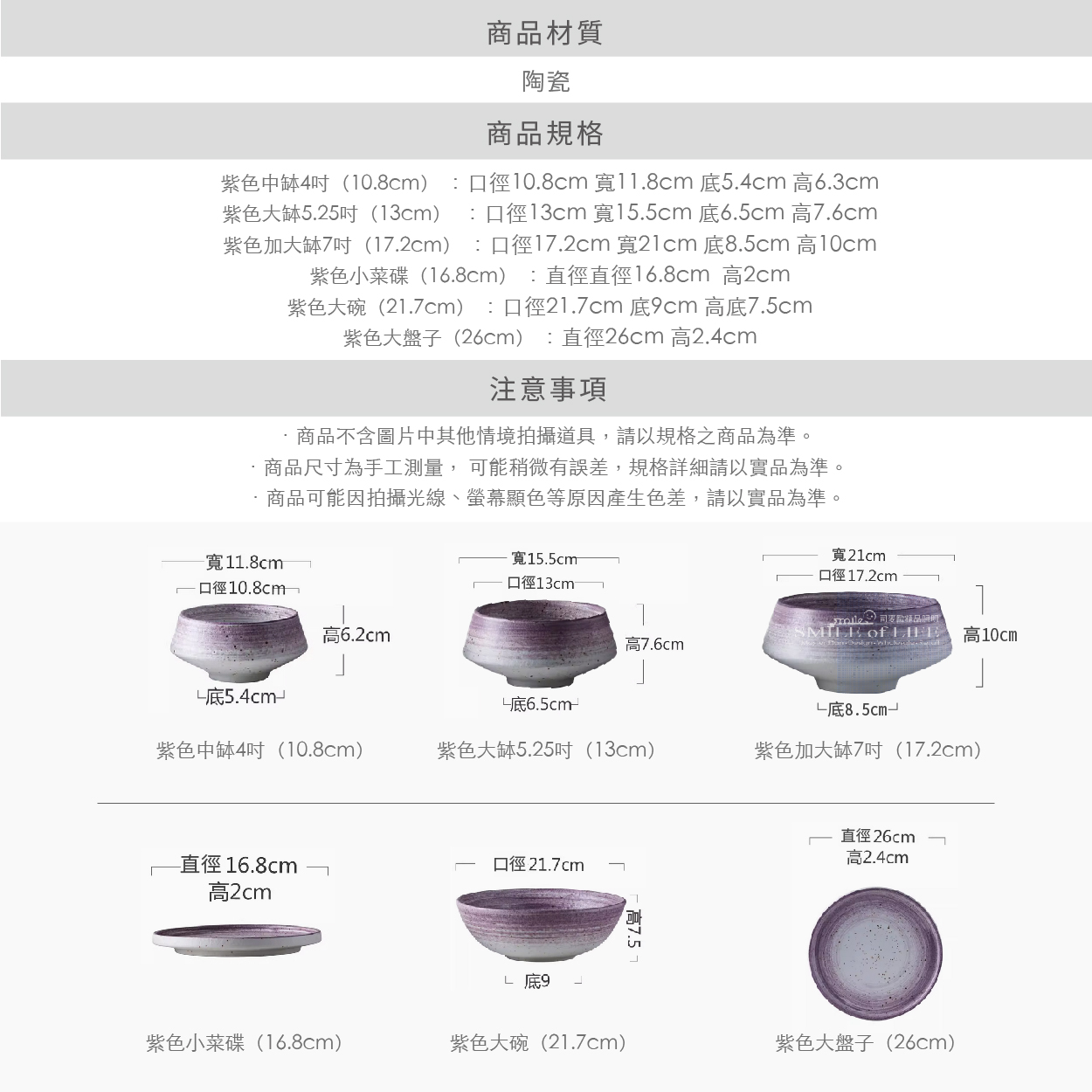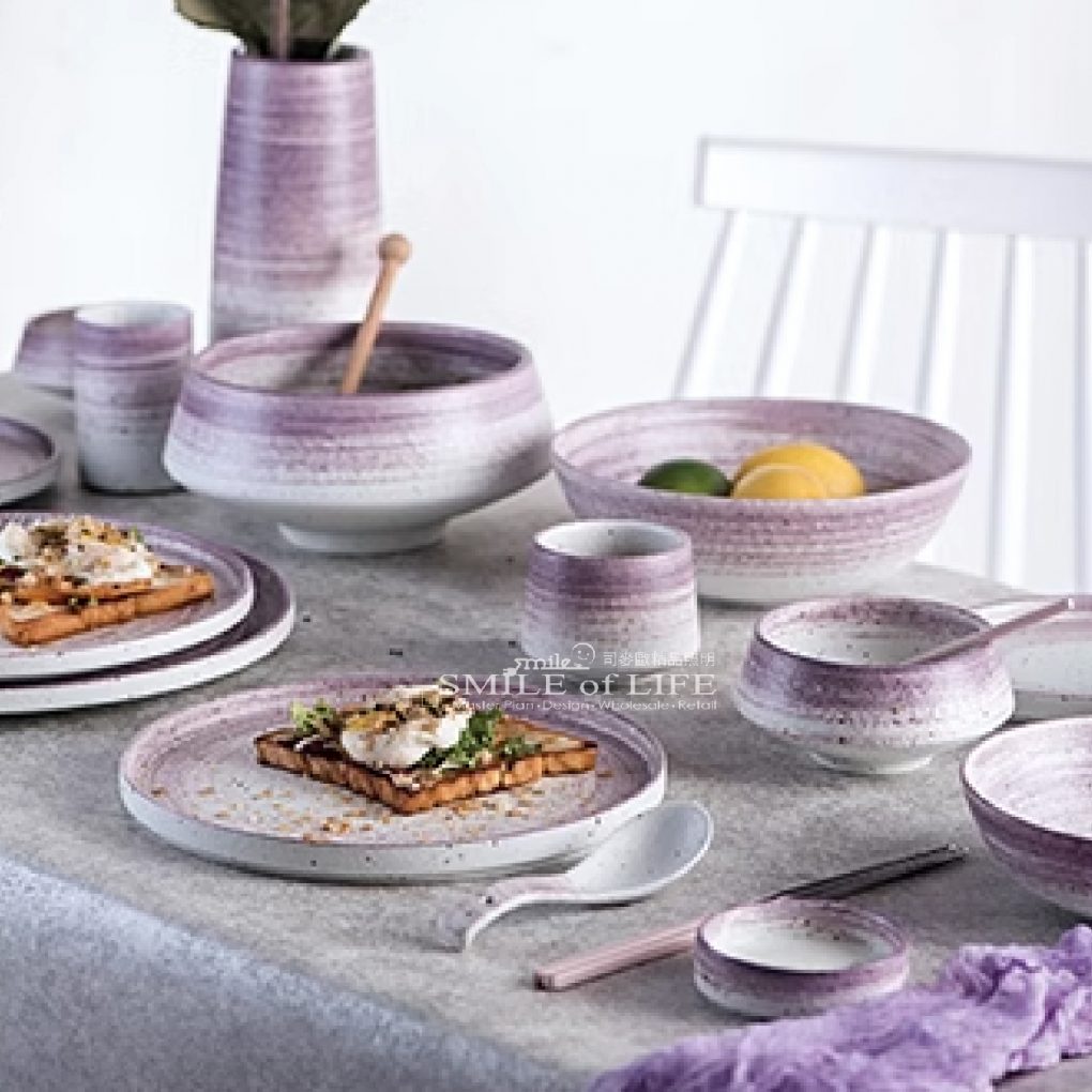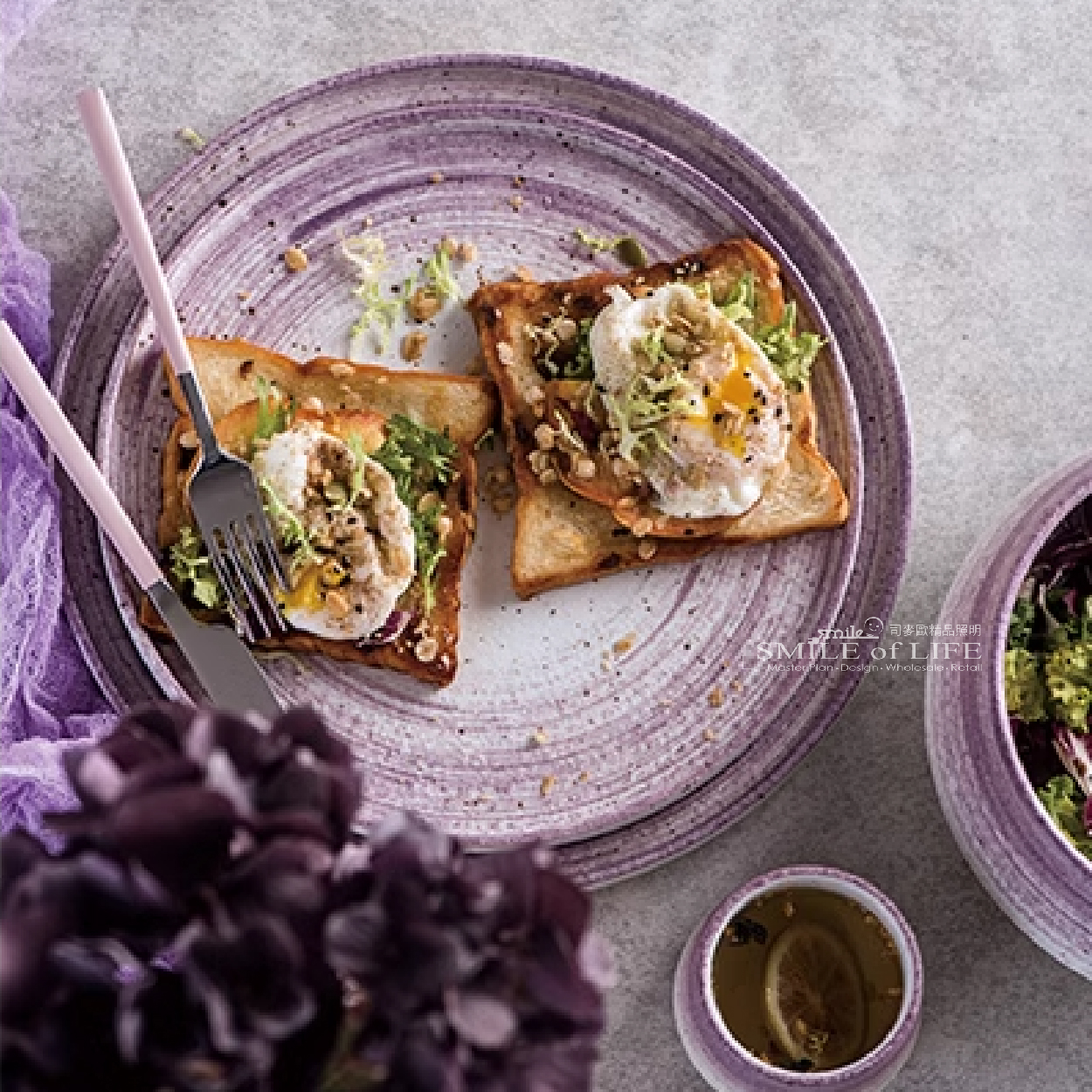 西式紫色陶瓷餐盤 一種典雅而現代的選擇, 為您的餐桌增添了一抹獨特的色彩和風格。 - 紫色的色調帶來一種優雅和神秘的氛圍, 讓您的餐桌呈現出一種別緻的美感。 選擇這款紫色陶瓷餐具, 讓每一頓飯都成為視覺和味覺的雙重享受。 商品尺寸:依圖示