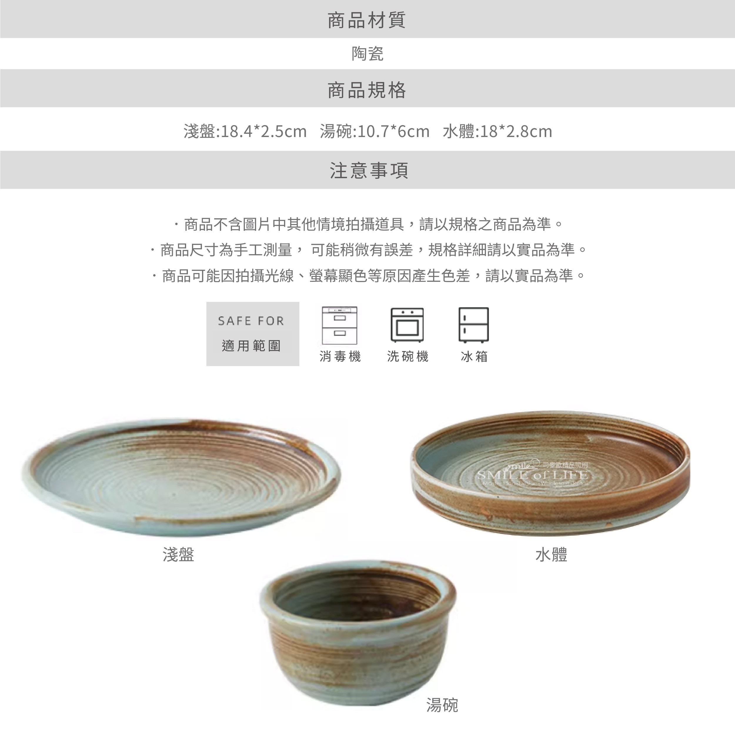 謎古系列・日式餐具 在日常餐桌上,找到專屬於自己的儀式感。 謎古系列以沉穩的色調、溫潤的釉色與細膩的手感, 打造一套充滿古樸韻味的日式餐具。 無論是日常家宴還是獨自用餐,都能帶來舒適愜意的餐食體驗。 ✔ 手工窯變釉色|細膩自然,每件器皿皆獨一無二 ✔ 厚實陶瓷質感|耐用,邊緣圓潤舒適 ✔ 日式簡約設計|低調雅緻,適合各種餐桌風格 ⭕洗碗機 ⭕微波爐 ❌烤箱 商品尺寸: 淺盤18.4cm*2.5cm 湯碗10.7cm*6cm 水體18cm*2.8cm![]()