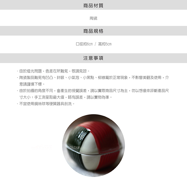迷你飯糰小味碟 和風食器 別緻典雅 可以用來裝醬醋調料碟芥末等 生活是油鹽醬醋茶 每天的日復一日 當然也常常需要一種儀式感 微小的細節中透露出閃光 體現出生活的美好 當美味的食物在杯盤中散發著誘人的香氣 犒勞家人也取悅自己 這便是人生的美好 讓你坐上餐桌時 更能體會食器之美帶來的愉悅 商品尺寸 口徑約6cm / 高約5cm