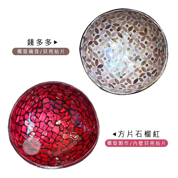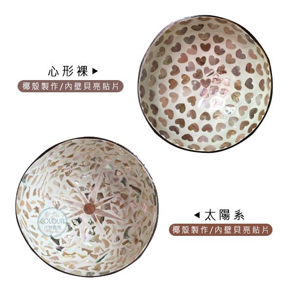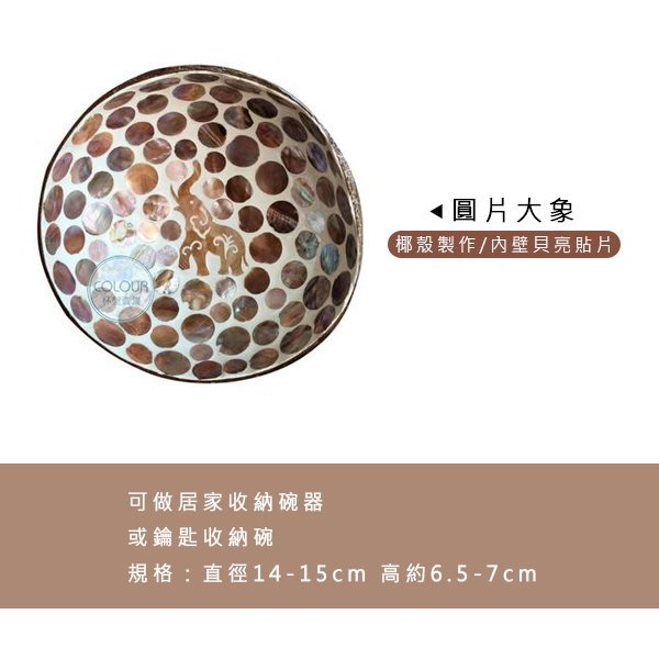 進口貝殼椰子碗【多種款式】 生活精緻美物-椰子殼碗器 是使用椰殼鋸成一個碗的形狀 然後在器物的內壁上 鑲上各種形狀的貝殼 所製成的日常器具及工藝品和美術品 可做居家收納碗器 或鑰匙收納碗 【商品尺寸】 規格:直徑14-15cm 高約6.5-7cm
