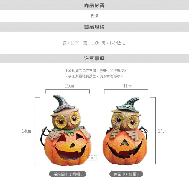 鄉村田園風手工彩繪貓頭鷹南瓜提燈 萬聖節必備南瓜提燈, 可愛又氛圍感滿滿, 當派對燭台或擺件都超好拍! 進口產品一般都不是長期都有的貨, 一批貨賣完,正常都很難在補到貨, 量也比較有限,喜歡的朋友迅速下單哦! 商品規格: 長:11CM 寬:11CM 高:14CM左右