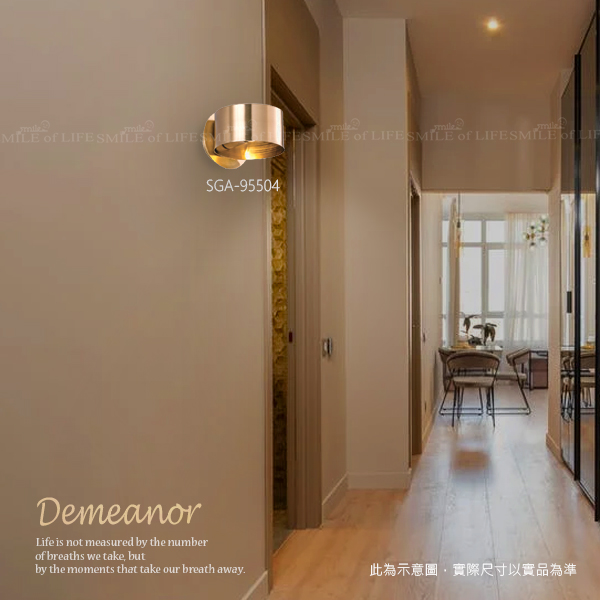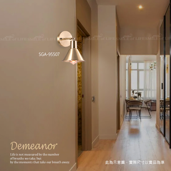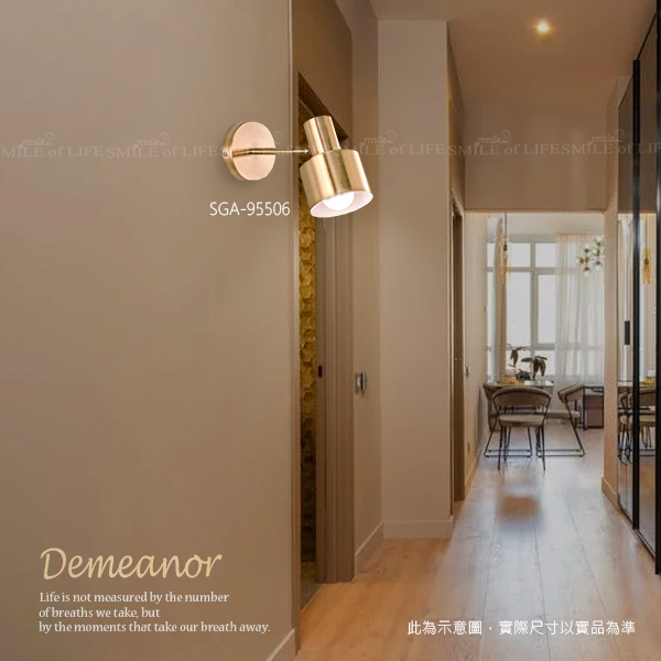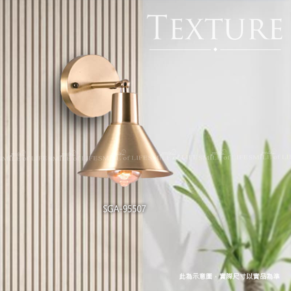 金銅色質感壁燈SGA-95504-7 # 金銅色質感壁燈增添輕奢北歐感, 營造質感氛圍,打造儀式感生活。 商品規格: SGA-95504 尺寸 : W150mm H110mm 光源 : E27X1 另計(限裝E27 6W燈絲泡) 材質 : 鐵材仿古金銅電鍍(上下婁空、上下光) SGA-95505 尺寸 : W125mm H210mm D285-315mm 光源 : E27X1 另計 材質 : 鋼材鍍青古銅(燈罩可上下調動) SGA-95506 尺寸 : W120mm H200mm D230mm 光源 : E27X1 另計(限裝E27 LED 12W以下) 材質 : 鐵材仿古金銅電鍍、拋光(可調角度) SGA-95507 尺寸 : W170mm H230mm D200mm 光源 : E27X1 另計(限裝E27 LED 12W以下) 材質 : 純銅製品、拋光(可調角度)
