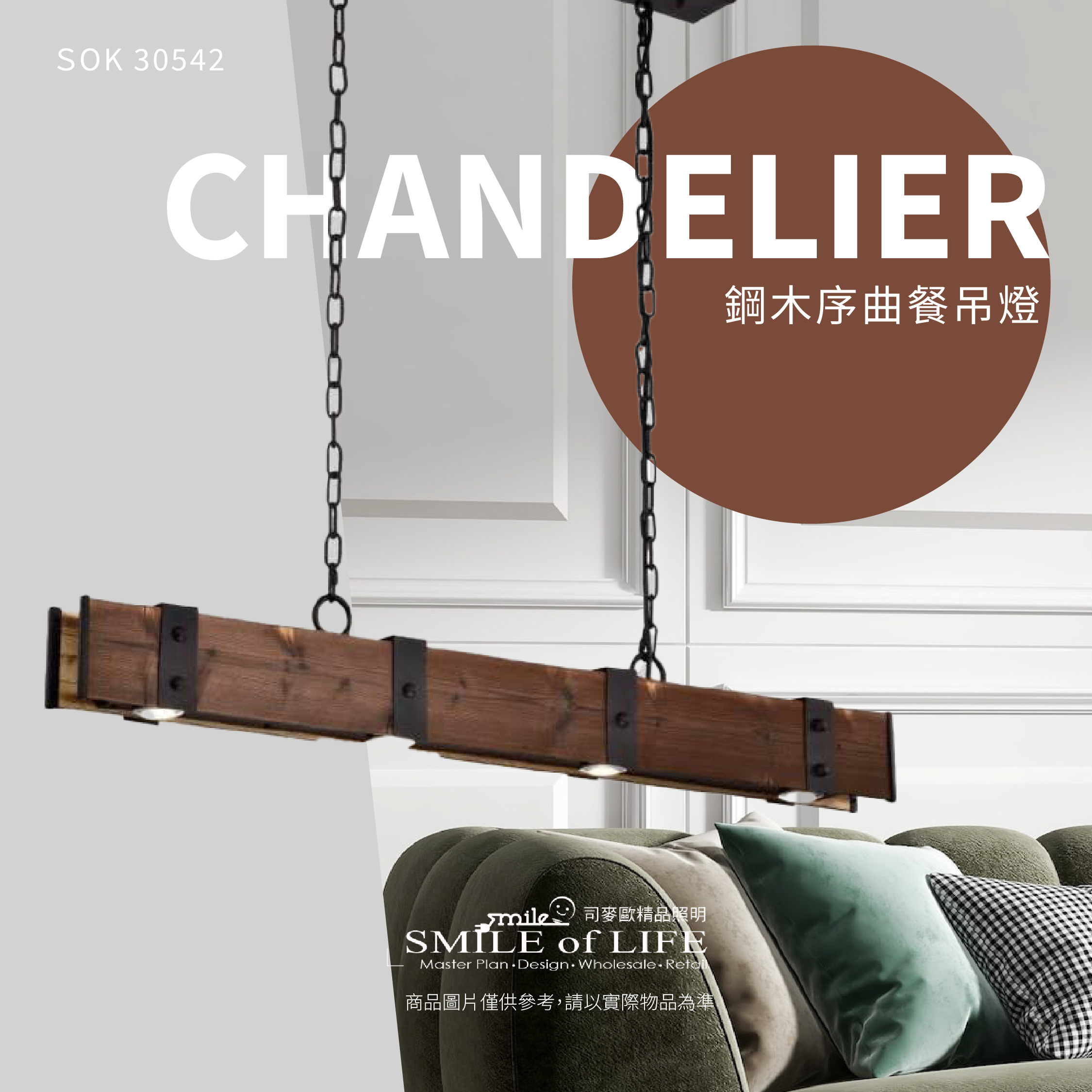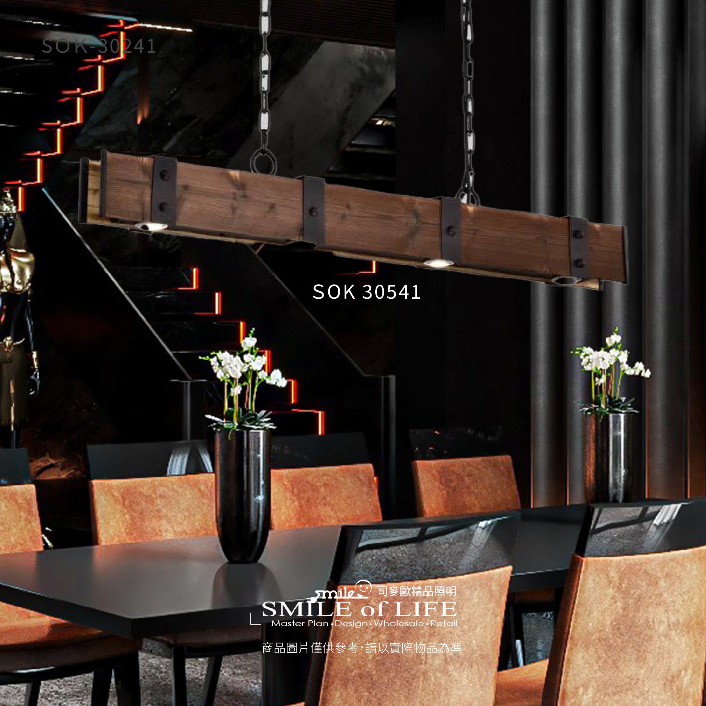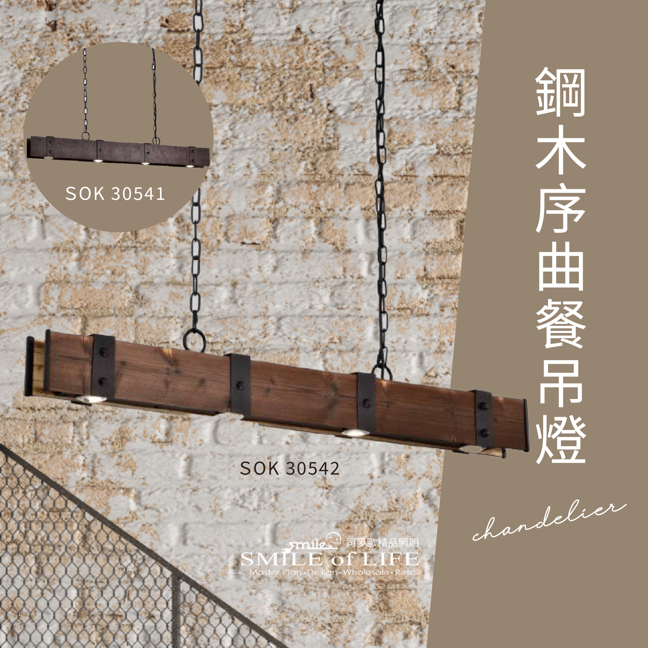 鋼木序曲餐吊燈SOK-30541 金屬與木質的完美樂章, 在光影間奏響現代與自然的對話。 - 鋼的冷冽剛毅,搭配木的溫潤質感, 簡約俐落的線條勾勒出和諧的視覺平衡, 為餐桌空間增添一抹雅致與溫暖。 商品規格: 尺寸:總長1000mm 高100mm 寬75 鍊長:600mm 內附LED 5W*4 快拆式燈源 材質:玻璃 色溫:可選3000K/4000K