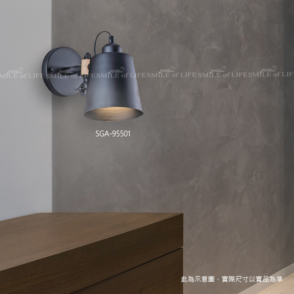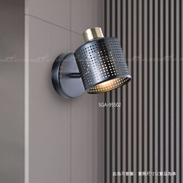 鐵材烤漆壁燈【三款】 # 鐵材烤漆壁燈增添輕奢北歐感, 營造質感氛圍,打造Chill時尚生活。 商品規格: SGA-95501 尺寸 : W130mm H250mm D180mm 光源 : E27X1 另計 材質 : 鐵材烤黑漆、實木(可調角度) SGA-95502 尺寸 : W120mm H170mm D190mm 光源 : E27X1 另計 材質 : 鐵材烤黑漆+電鍍古銅 SGA -95503 尺寸 : W120mm H280mm D190mm 光源 : E27X1 另計 材質 : 鐵材烤黑漆+電鍍古銅