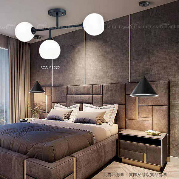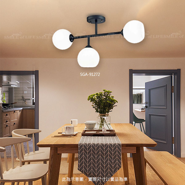 鐵藝烤漆圓球半吸頂燈SGA-91272 黑色烤漆鐵藝燈體 優雅美觀大氣 無需過多裝飾就顯出優雅感 點亮您家居溫馨之光 產品編號:SGA-91272 光源:E27x3 另計 材質:鐵藝烤黑漆、玻璃 尺寸:W180mm H390mm L750mm