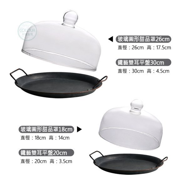 平盤【20cm】+玻璃圓形甜品罩【18cm】, 平盤【30cm】+玻璃圓形甜品罩【26cm】