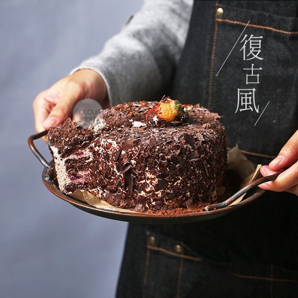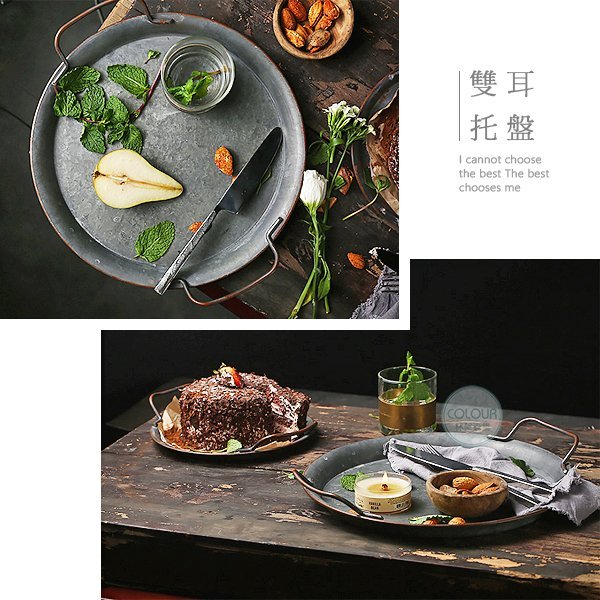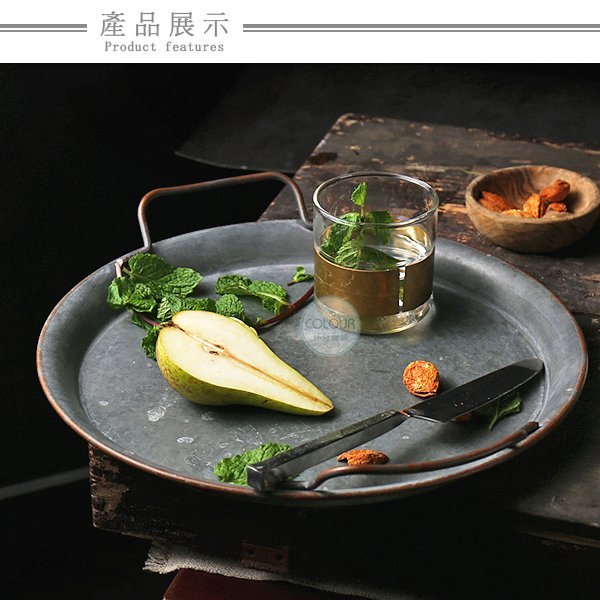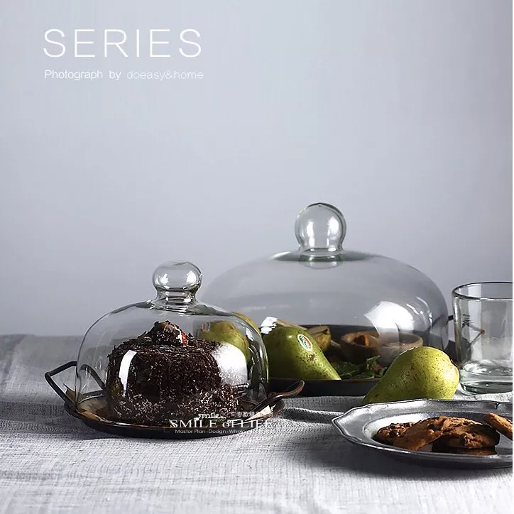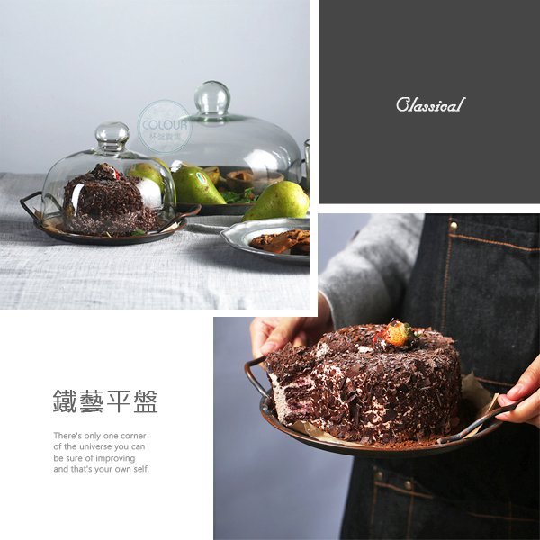 復古風格鐵藝雙耳平盤,加上透明玻璃罩,用來搭配美食,更加美觀