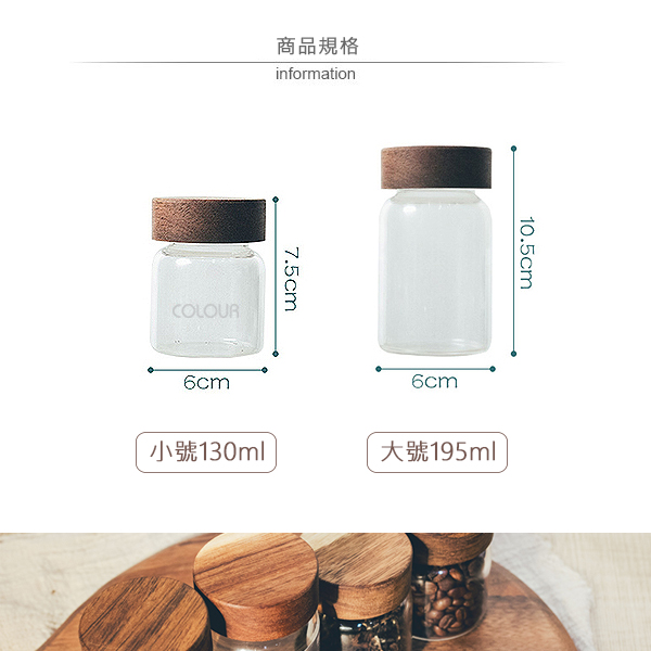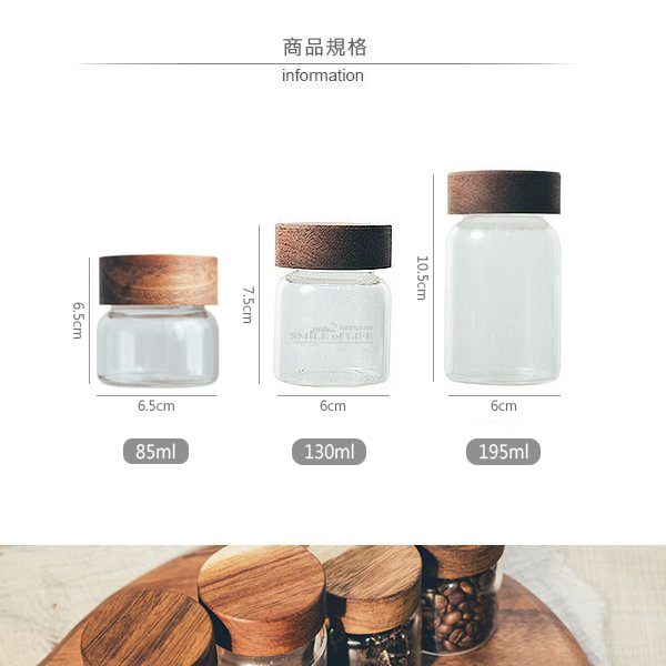 日式木蓋耐熱玻璃密封罐 ※木蓋不可用洗碗精,盡量避免過水洗※ 相思木為天然木材 木紋和木結都比較明顯 每個蓋子顏色都不太一樣哦 螺紋口搭配密封墊 密封性良好 放水倒置不漏 高硼硅耐熱玻璃 比普通玻璃更通透耐用 【商品尺寸】 大號(寬)200ml:高約9cm 寬6.5cm 大號(窄)195ml:高約11cm 寬6cm 內徑瓶口約3.5CM 小號130ml:高約7.5cm 寬6cm 內徑瓶口約3.5CM 迷你號85ml:高約6.5cm 寬6.5cm 內徑瓶口約4.5CM 特大號250ml:高約11cm 寬6.5cm