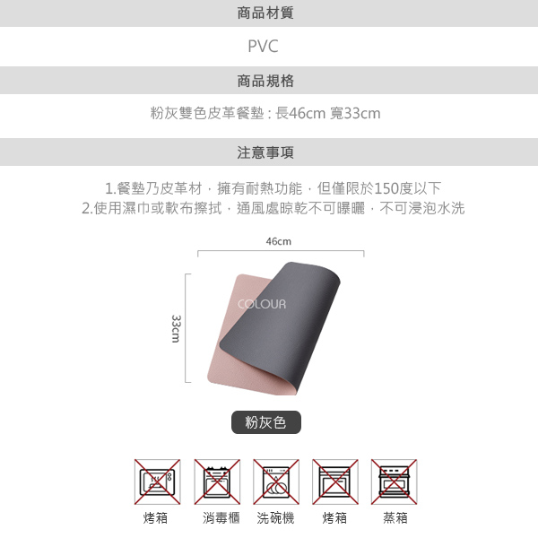 ※餐墊乃皮革材,擁有耐熱功能,但僅限於150度以下