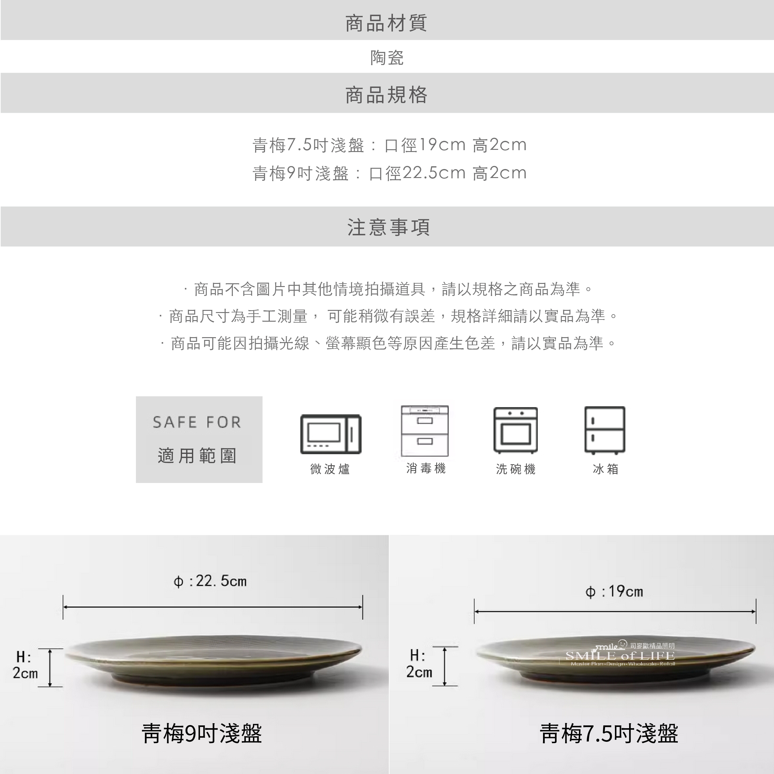 7.5吋:直徑19cm 高2cm