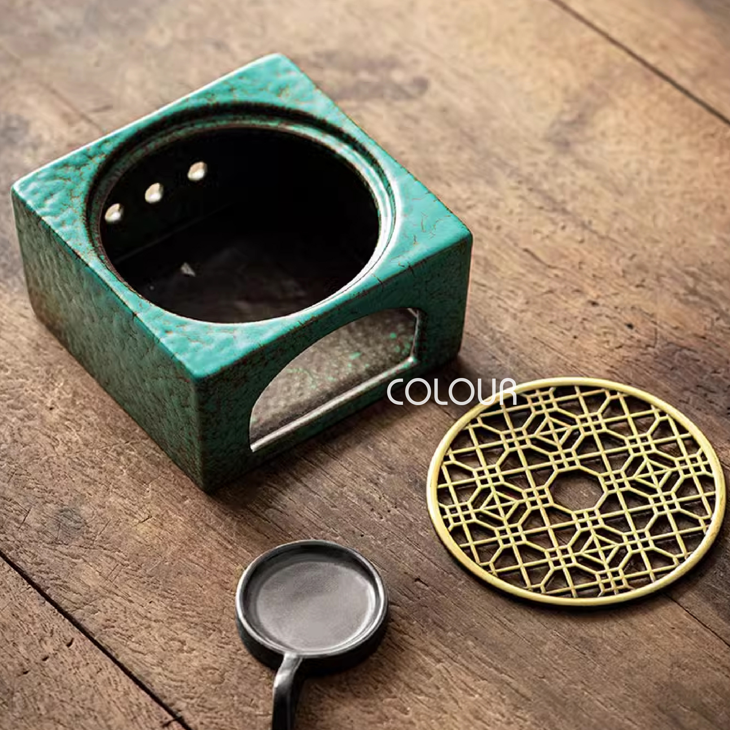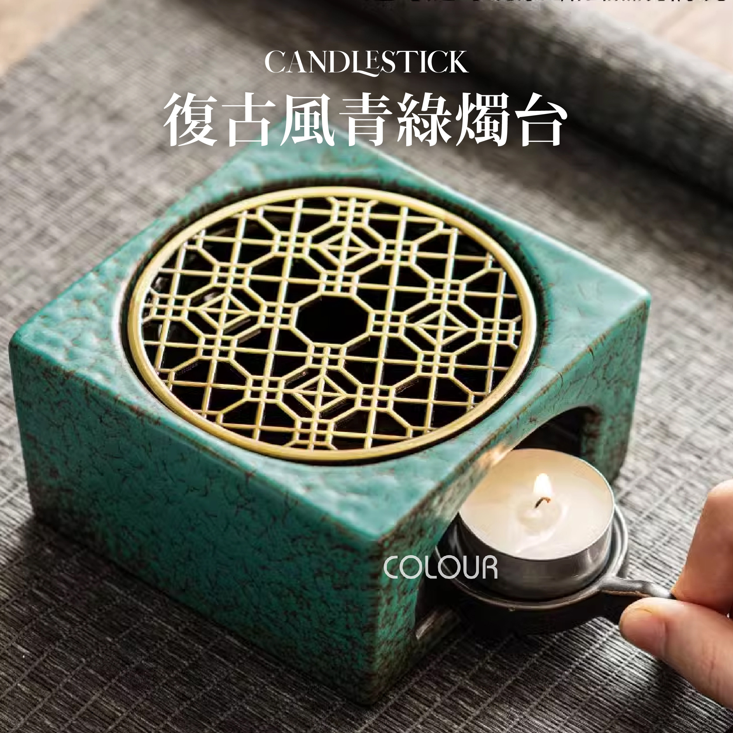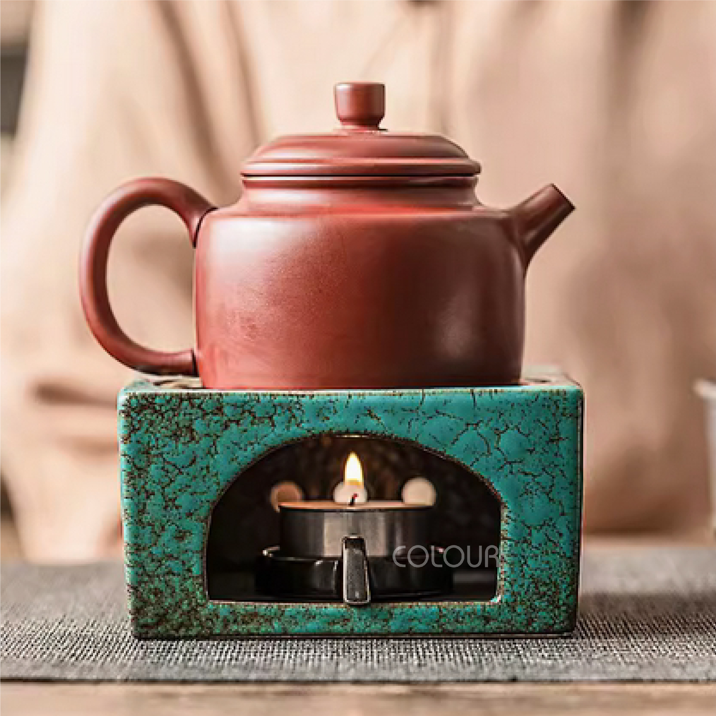 青綠色蠟燭煮茶爐