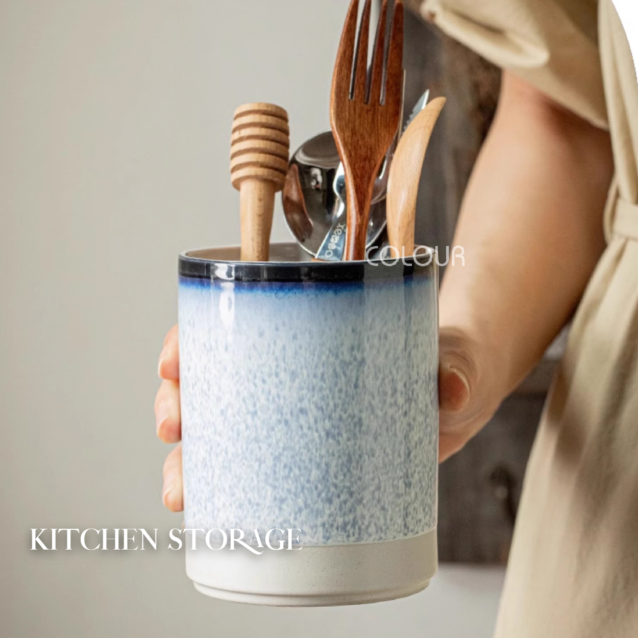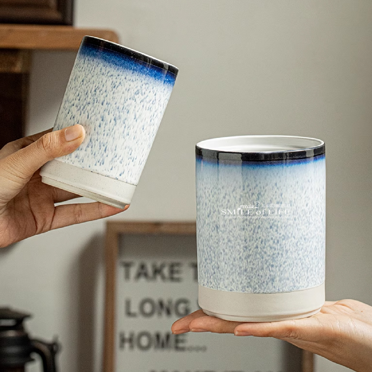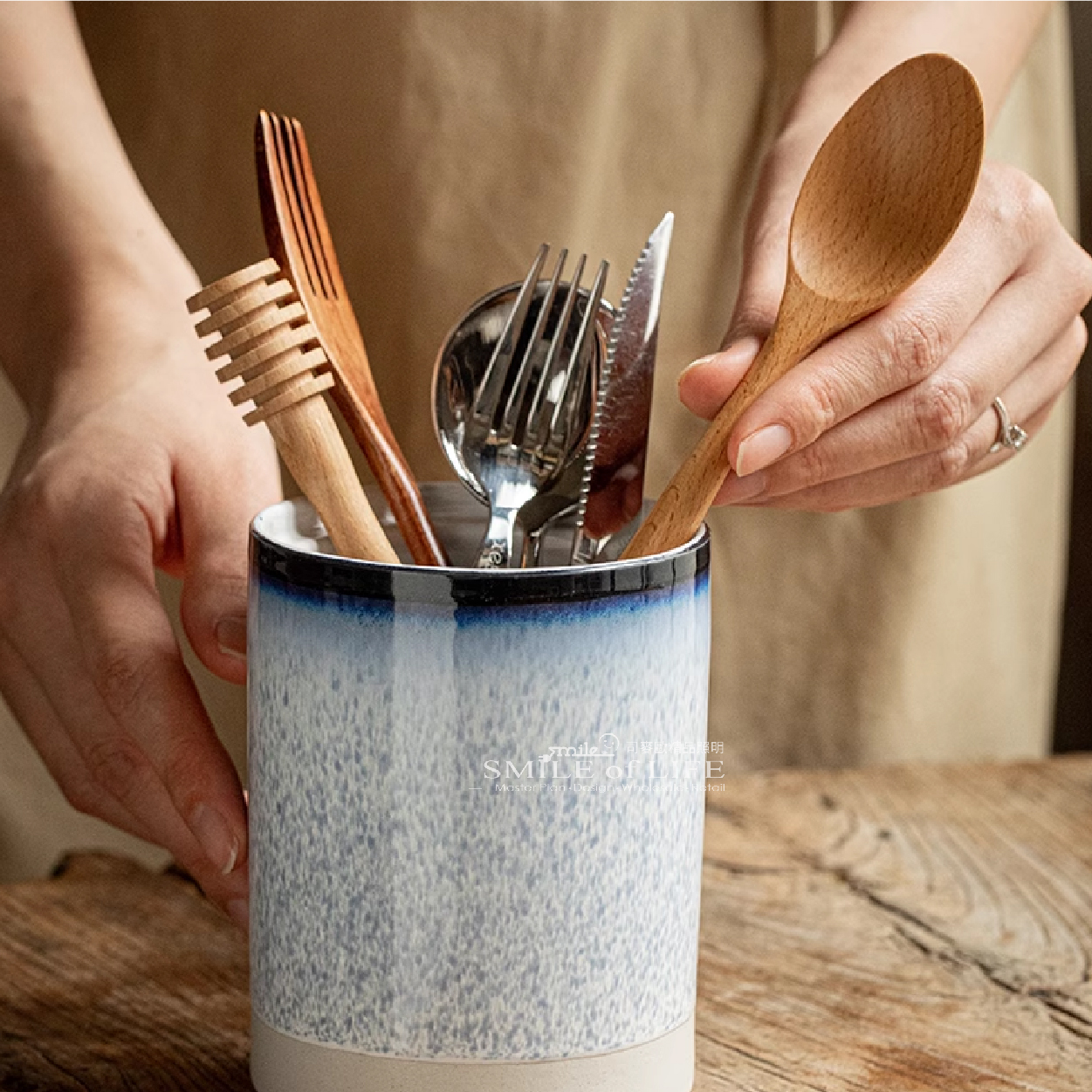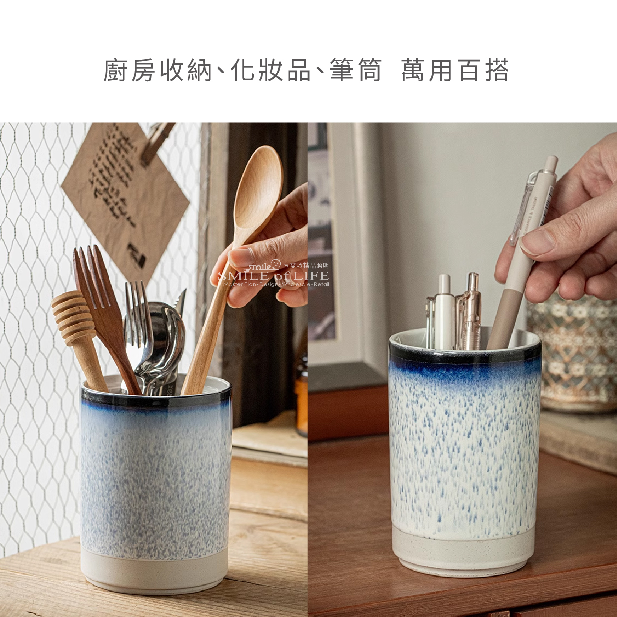 風墨藍窯變收納罐 風墨藍窯變餐具收納罐,賦予生活美學的多功能良品 不僅能精緻收納餐具,還能作為優雅的花瓶, 為空間增添自然清新的氛圍,讓生活更加美好! 商品尺寸: 高款:高13cm 底徑8.8cm 口徑9.8cm 矮款:高11.5cm 底徑6.5cm 口徑7.5cm