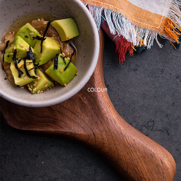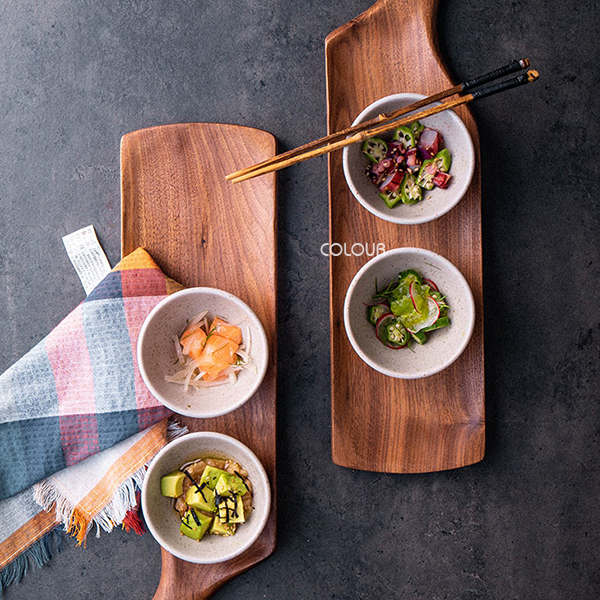 原木打造的食器 有種說不上的溫馨舒適感 具設計感的不規則把手 適合放甜品 小點心 小碟