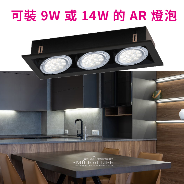 2. 可裝 9W 或 14W 的 AR 燈泡