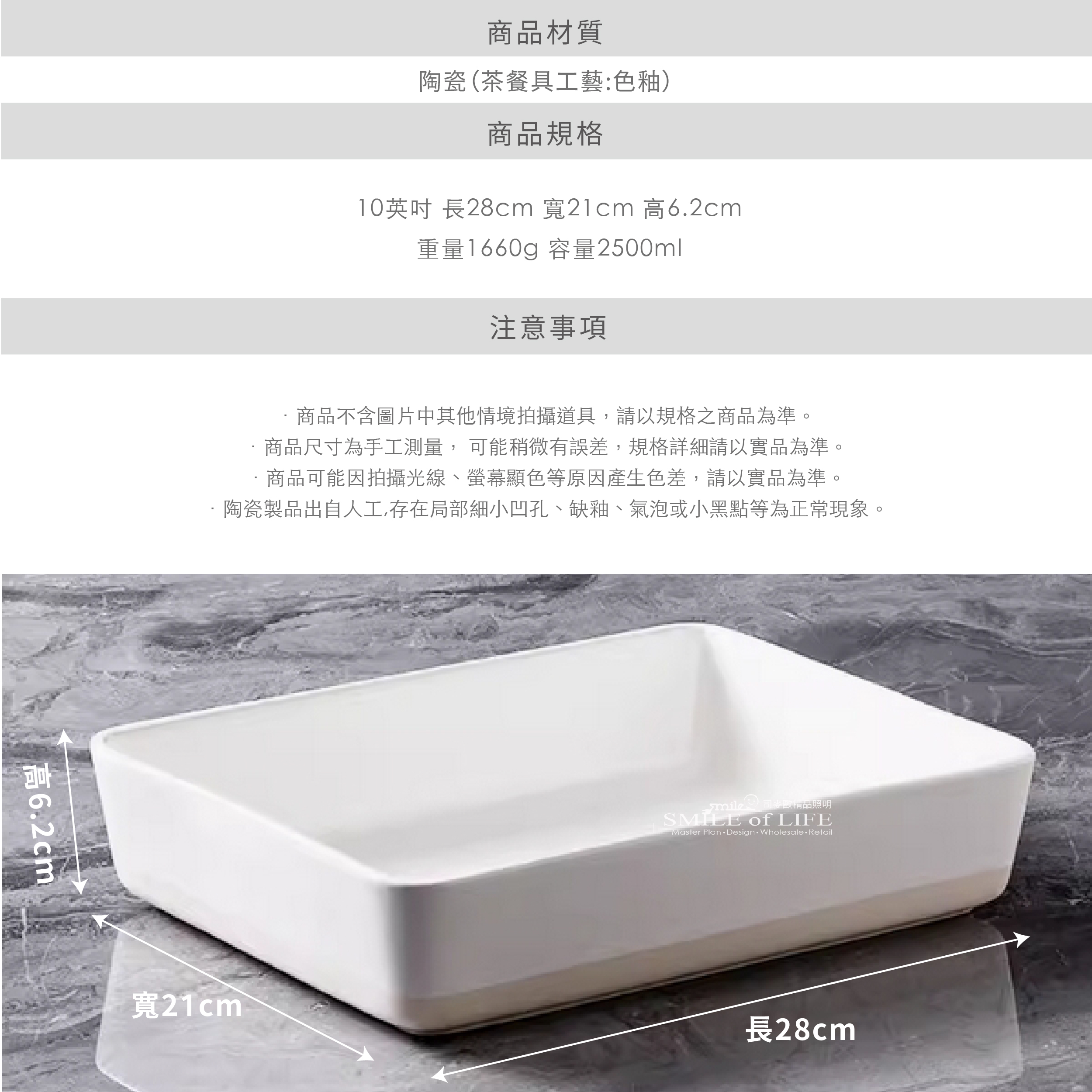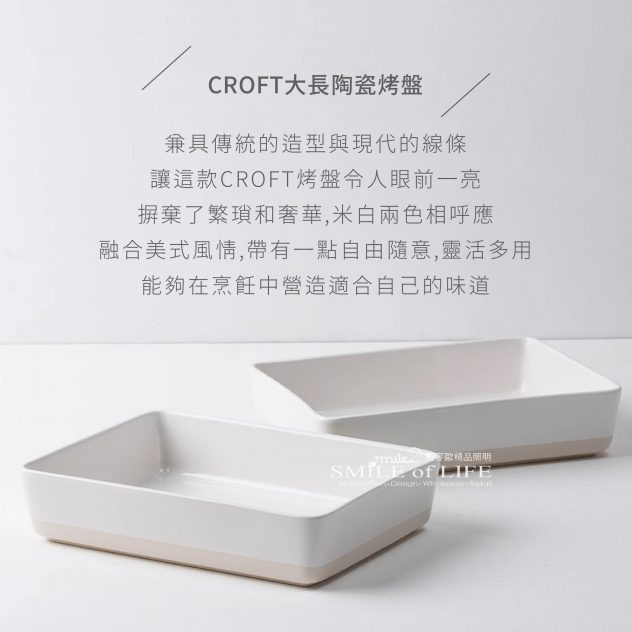 CROFT白色大烤盤 專為大份量料理設計,簡約大方的白色外觀 其寬敞的空間與優質材質,確保食物受熱均勻 讓您的佳餚在烤盤中更加引人注目 無論是烤製豐盛的肉類、滿滿的蔬菜拼盤 還是豐盛的焗烤料理,這款超大烤盤都能輕鬆應對 商品尺寸:長28cm 寬22cm 高6.2cm 2500ml