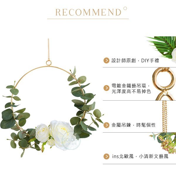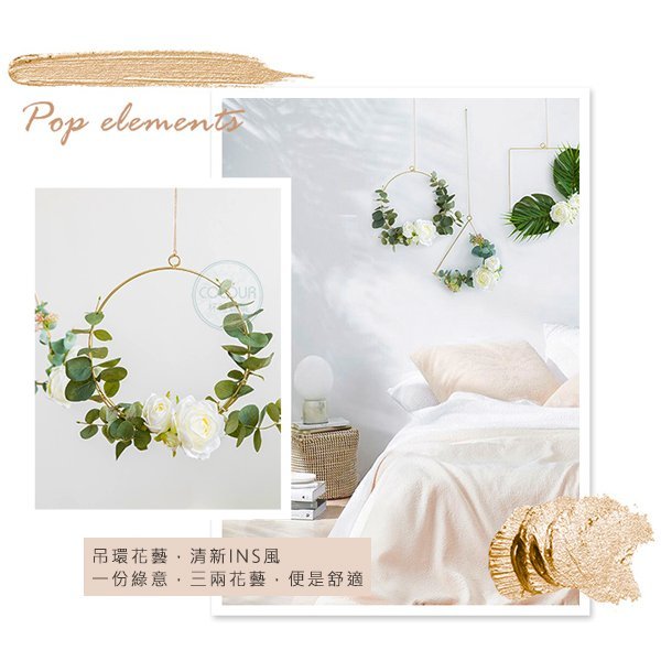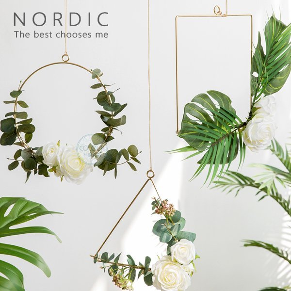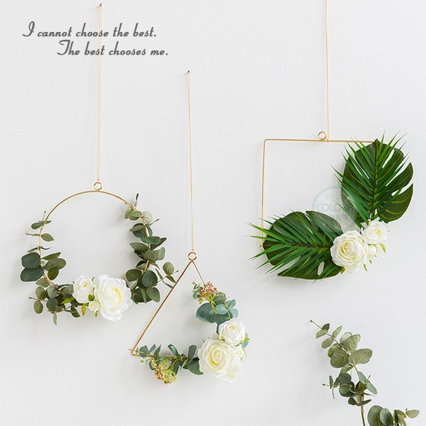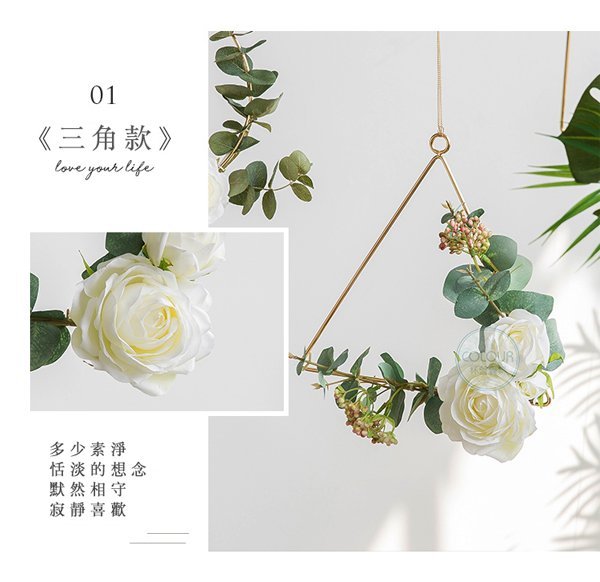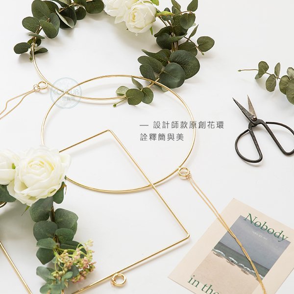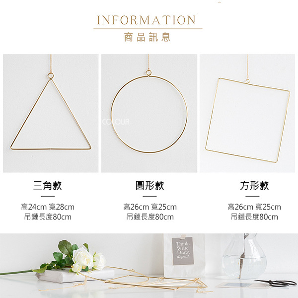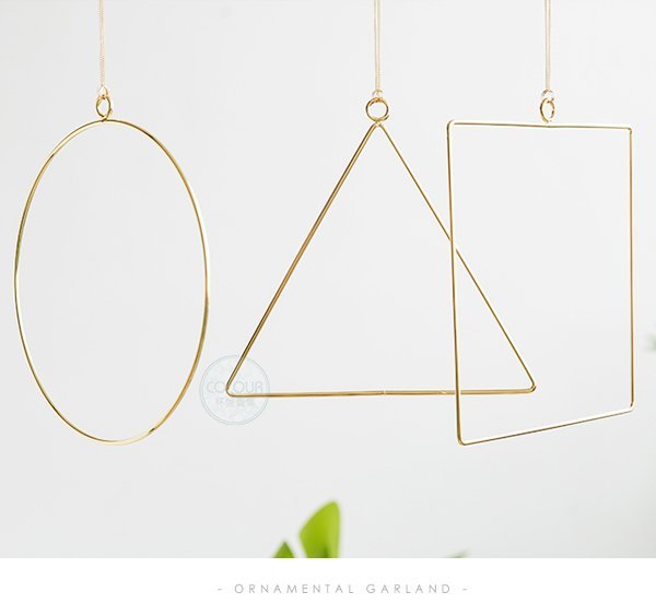 鐵藝牆面裝飾架(不含花材) 設計師款原創花環 簡約幾何吊環,配以綠植、花藝 DIY手藝製成,清新文藝的色澤 帶來舒適愜意的家居氛圍感 電鍍金屬鐵藝吊環 光澤度高不易掉色 金屬吊鍊,時髦個性 【商品尺寸】 三角款/長28cm 寬24cm 高7cm 圓形款/長26cm 寬25cm 高9cm 方形款/長25cm 寬25cm 高9cm
