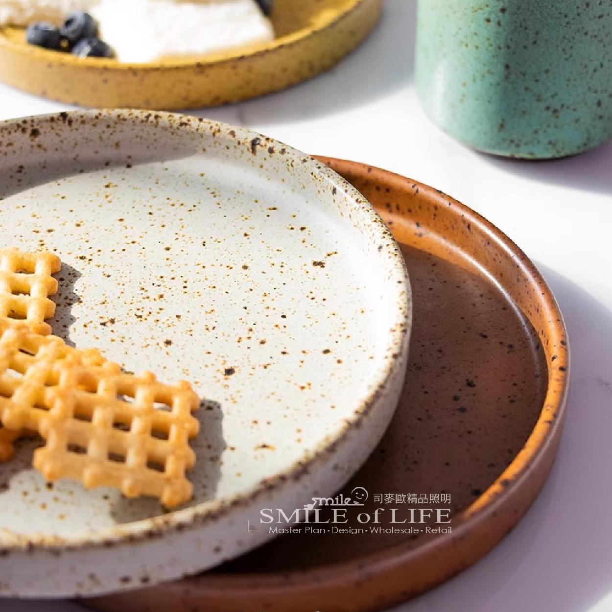 RUST復古粗陶點心盤 點綴餐桌的經典選擇.... 復古工藝結合自然質感,每一處釉面都是時光的痕跡 粗陶的溫潤手感,搭配獨特的噴點釉面 將您的點心時光變成一場藝術饗宴 商品尺寸:直徑14.6cm 高1.6cm
